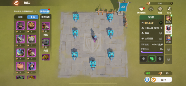 在英雄和士兵都具備了足夠的戰(zhàn)斗力后,玩家接下來要思考的就是隊(duì)伍搭配了。一支隊(duì)伍由英雄和士兵組成,英雄具有不同的功能以及技能,而士兵也有不同的定位,玩家需要根據(jù)需求組建自己的隊(duì)伍。