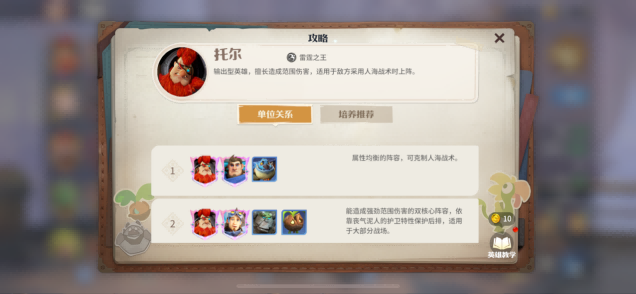 如果實(shí)在沒有配隊(duì)思路,還可以通過英雄攻略進(jìn)行配隊(duì),這里不僅有隊(duì)伍推薦,還在每支推薦的隊(duì)伍后面標(biāo)注了適用場景和效果,足以滿足玩家的配隊(duì)需求。同時(shí),攻略中還細(xì)心地搭配了培養(yǎng)攻略,詳細(xì)介紹了英雄的養(yǎng)成方式。以上信息足以為處于新手期的玩家們撥開迷霧,找到適合自己的組隊(duì)方向。