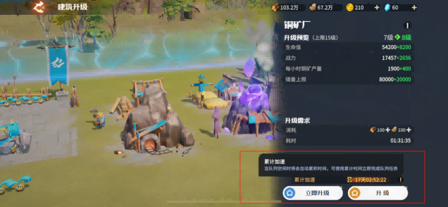 對于主打“務(wù)實(shí)”的SLG玩家,除了游戲內(nèi)容,直接影響玩家游戲體驗(yàn)的發(fā)育問題也是大家關(guān)注的重點(diǎn)。而《龍石戰(zhàn)爭》除了有“離線時(shí)間累積加速”這種發(fā)育減負(fù)設(shè)計(jì),還有多角度的資源獲取方式,能夠從多個(gè)層面讓玩家玩得更輕松。